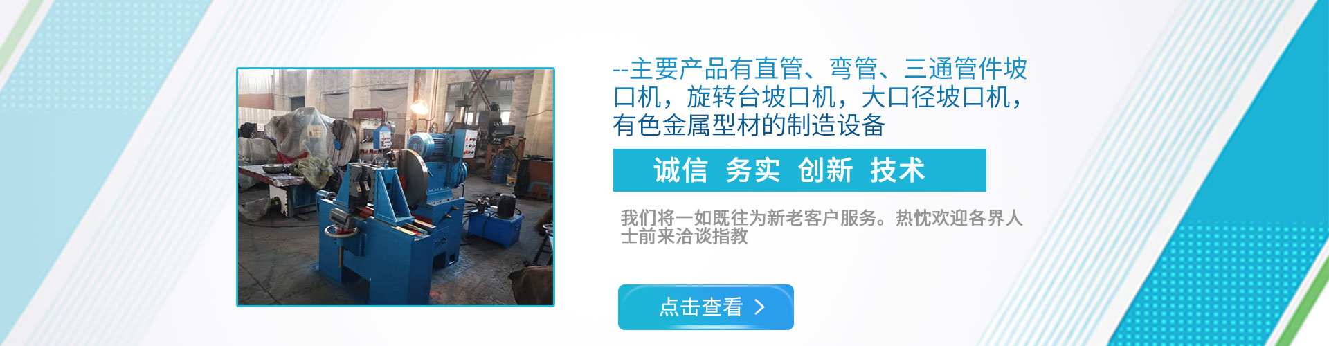 公司現下轄兩個分廠,一分廠主營電動管道坡口機和焊接設備,適用于造船、電力工程安裝、石油、化工、鍋爐廠、冶金以及鋼鐵行業(yè); 二分廠主營雙頭坡口機,600mm直管坡口機和金屬型材擠壓生產線,適用于銅、鋁、鎂、鉛、鋅等有色金屬及其合金的加工。